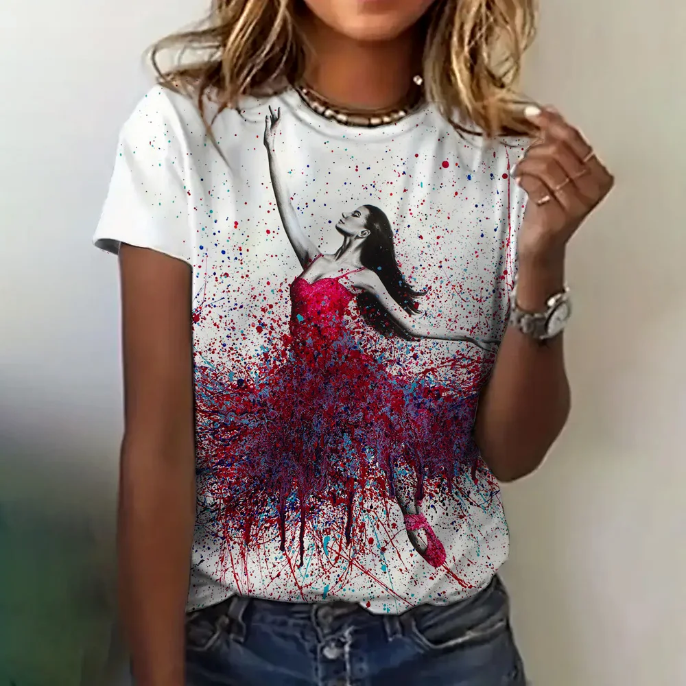 Women T-shirt Summer Fashion Crew Neck Clothing Ballet Dance Company Top Loose Trend T-shirt Elegant Short Sleeve Women Clothing